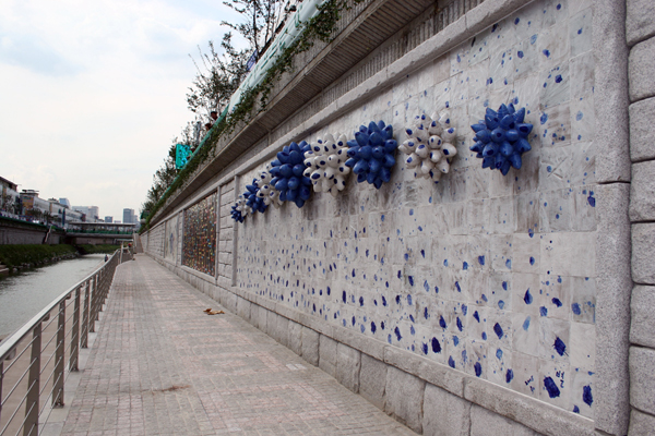 자연ㆍ환경을 주제로 한 현대 미술가 5인의 작품으로 오간수문 상류에 설치되어 있고 각각의 작품 크기는 가로 10m, 세로 2.5m이다.